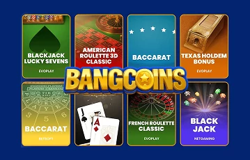 BangCoins also brings table games to the mix, including software-based and social live-dealer versions. Our count brought up 45+ software-based titles. Top tables we tried included 21 Burn Blackjack, Dozen Roulette, Baccarat 777, and Texas Hold’em Bonus.